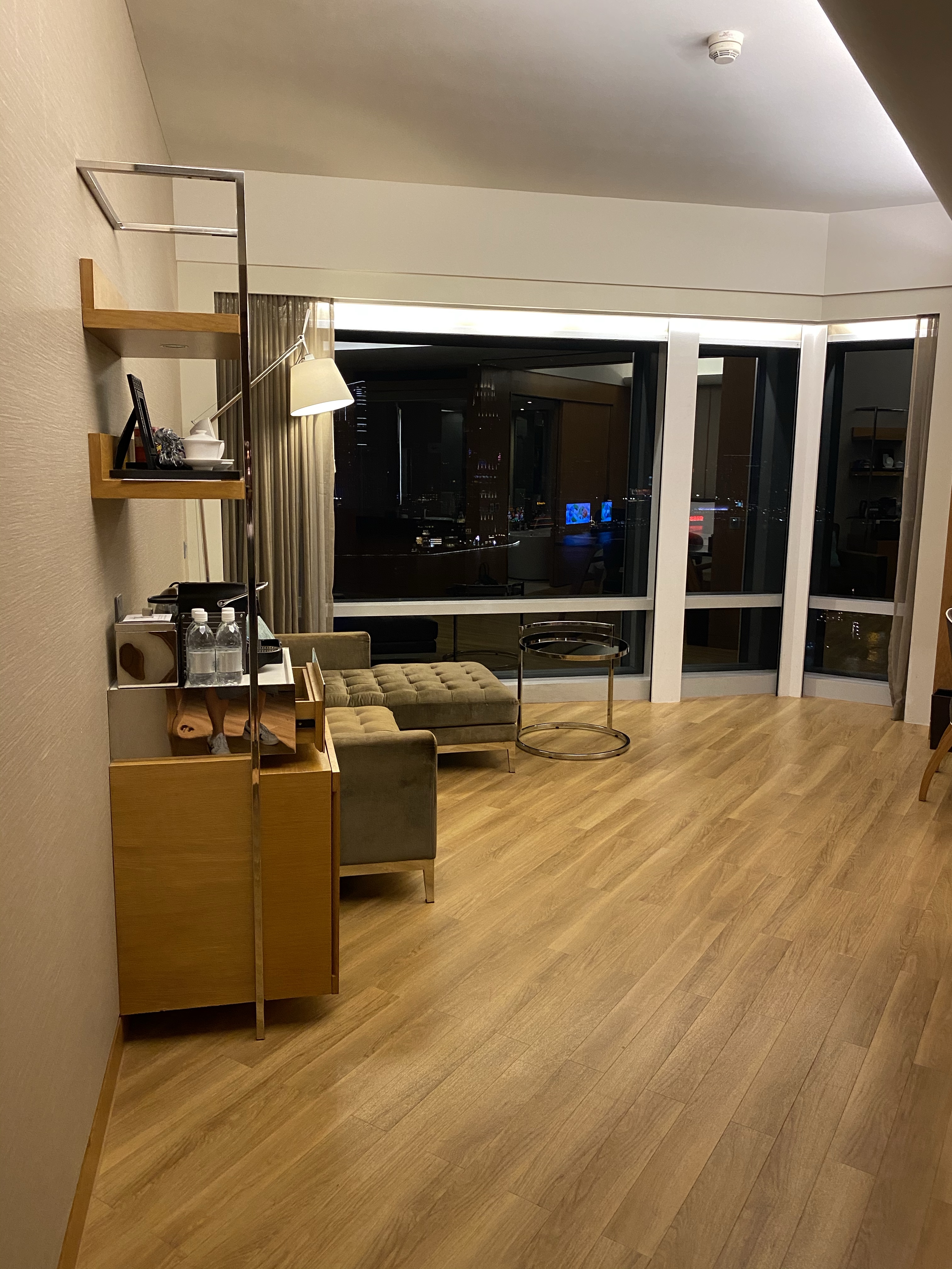 Studio Suite面積大約538平方呎,套房嚟講話大唔大(其實St. Regis嘅基本房都係咁上下大),但對於佢本身主要嘅對象係business trip或者機組人員用,喺基本房型二百零平方呎嘅情況下,呢個size已經好唔錯。一齊睇下佢個格局係點呀🤗