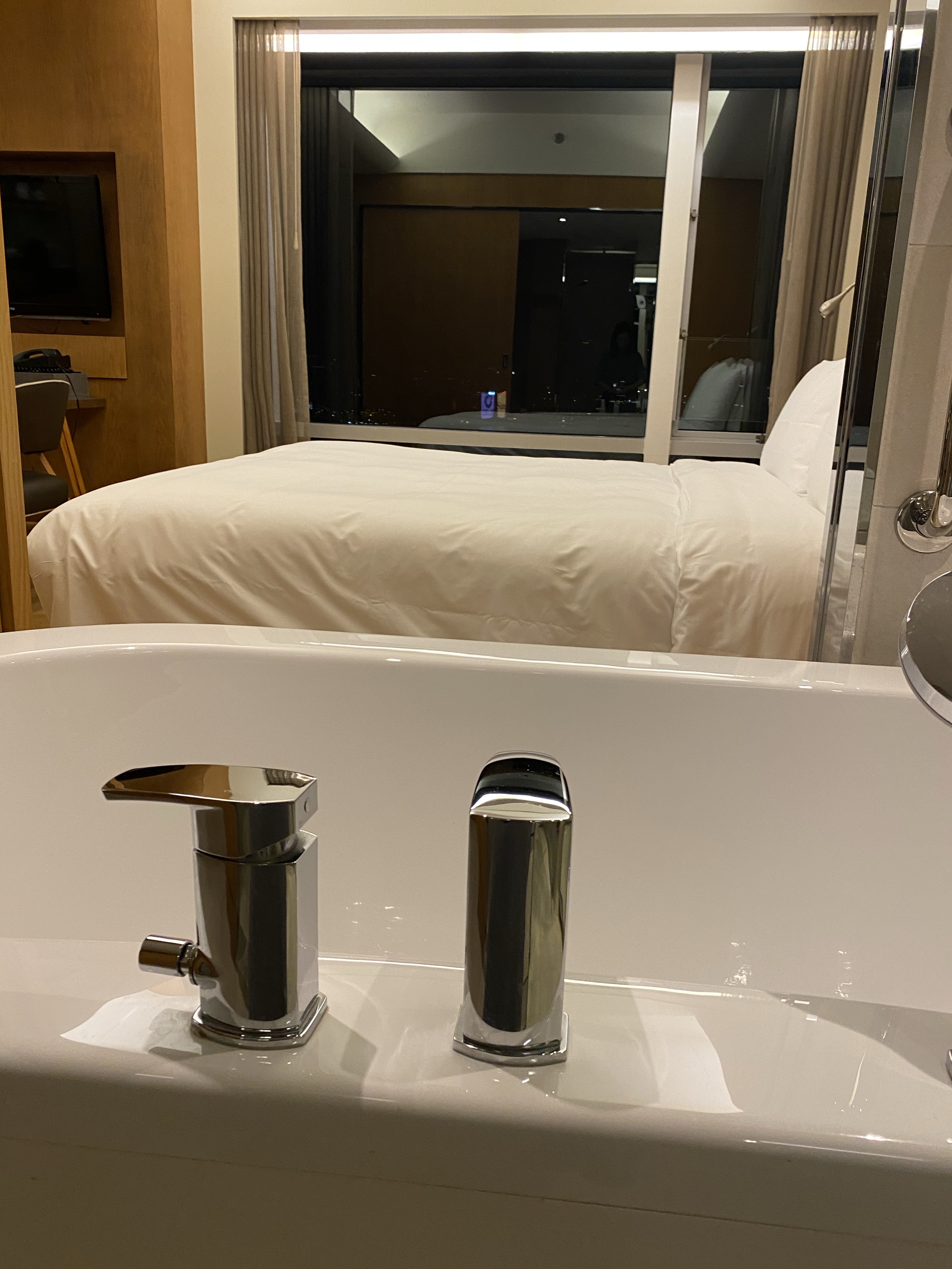浴缸唔算好大,但係如果開咗隔離道門,亦都可以望出去窗外,欣賞維港景色