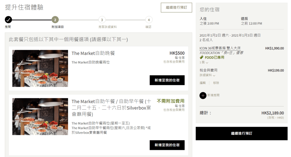 Hotel ICON嘅 The Market 有幾受歡迎唔駛多講,今次同大家講嘅呢個住宿優惠就可以揀喺 The Market享用自助午餐 (星期一至五) 又或者Brunch (星期六、日及公眾假期),價錢仲有$1,560+10%起,聽落真係好抵玩㗎。其實除咗午餐外,呢個住宿優惠都好彈性咁俾你揀其他唔同嘅餐飲,有啲唔駛加錢,有啲朋友如果想食自助晚餐就可以選擇加$500+10%;另外聖誕節嘅日子都有得揀㗎﹗